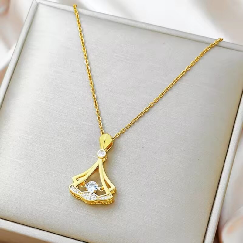 ₹1,500.00 Incl GST.Elegant Crystal Drop Stainless Steel Pendant Necklace