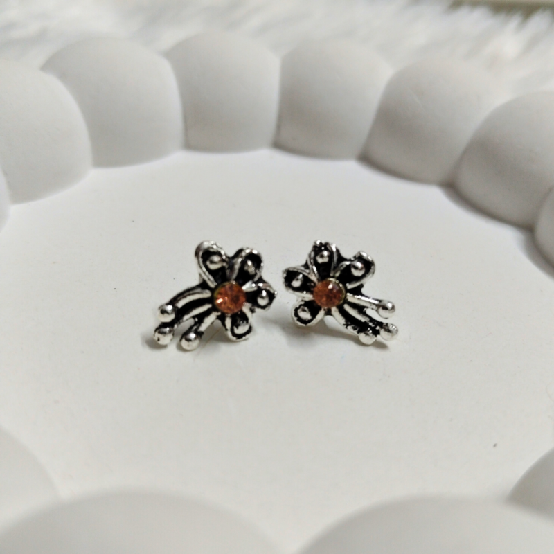 Gold Square Stud Earrings with Floral Detail
