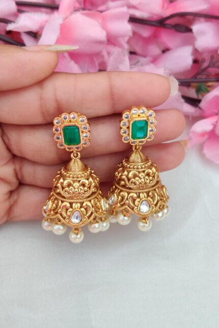 AD Green Stone Jhumka