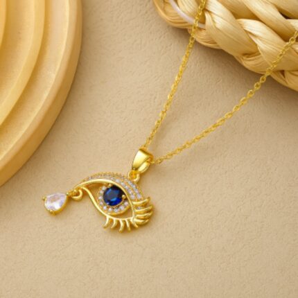 Evil Eye Stainless Steel Pendant Necklace with Blue Stone