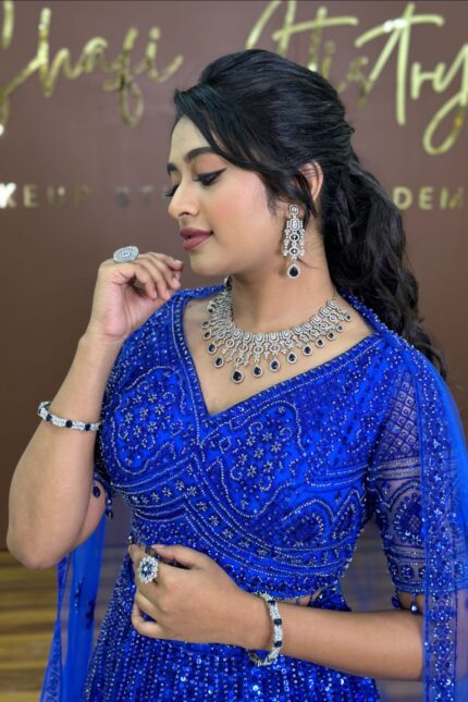American Diamond Blue Stone Designer Jewellery Set For Rent