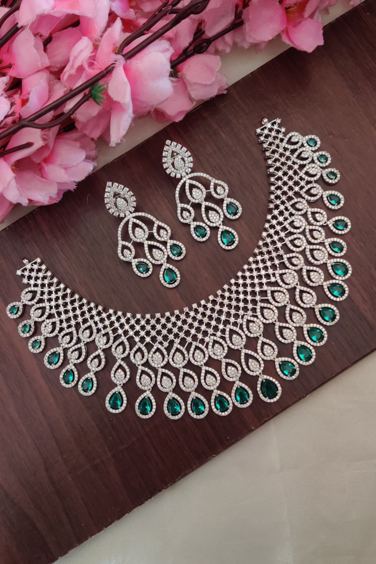 AD Peacock Green And White Designer Necklace offers a beautiful blend of fashion and comfort, making it suitable for regular use as well as special occasions. Its attractive design helps you create a complete and polished look without needing expensive precious jewellery. If you are looking for something trendy, versatile, and easy to wear, AD Peacock Green And White Designer Necklace is a great choice.