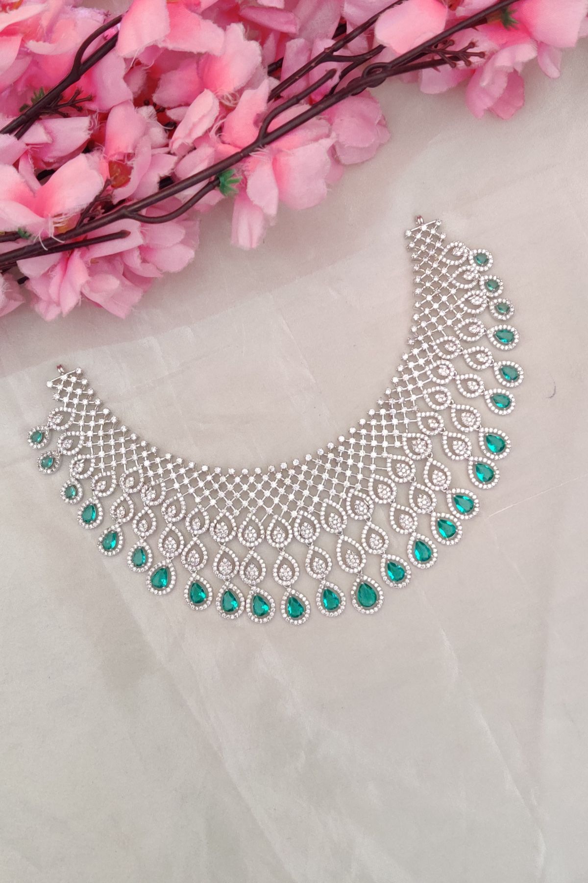 AD Peacock Green And White Designer Necklace is a fashion jewellery product. It is not made of real gold, silver, or precious metals. Slight variation in color or finish may occur due to screen settings and lighting conditions.