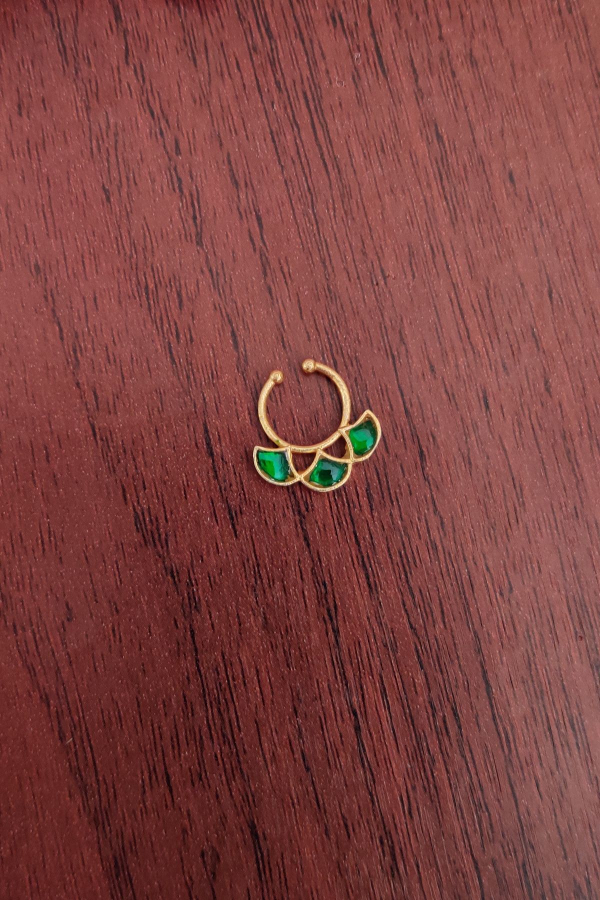 Pair Beautiful Green Stone Designer Nosepin with your favourite outfit to create a smart, elegant, and fashionable look. It can be styled for both simple everyday dressing and statement occasion styling.