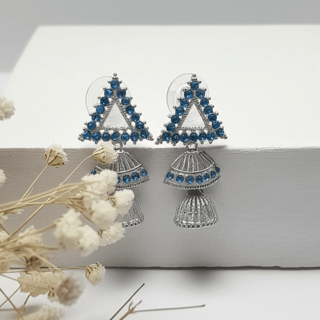 Elegant Blue Crystal Triangle Jhumka Earrings