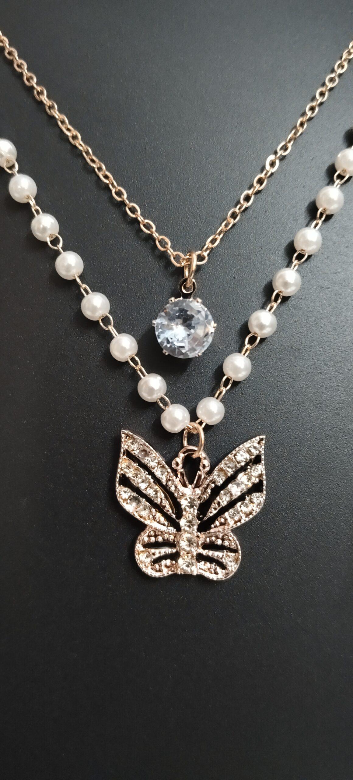About Elegant Double-Layered Pearl & Butterfly Pendant Necklace