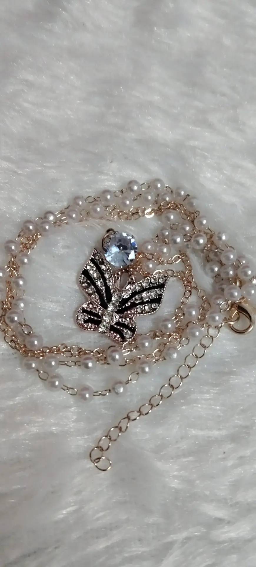 Elegant Double-Layered Pearl & Butterfly Pendant Necklace is a fashion jewellery product. It is not made of real gold, silver, or precious metals. Slight variation in color or finish may occur due to screen settings and lighting conditions.