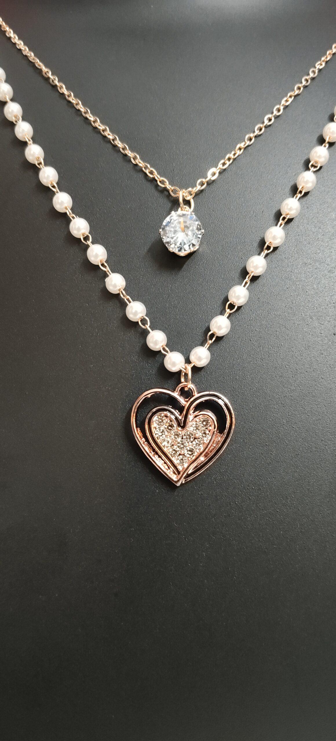 About Elegant Double-Layered Pearl & Heart Pendant Necklace