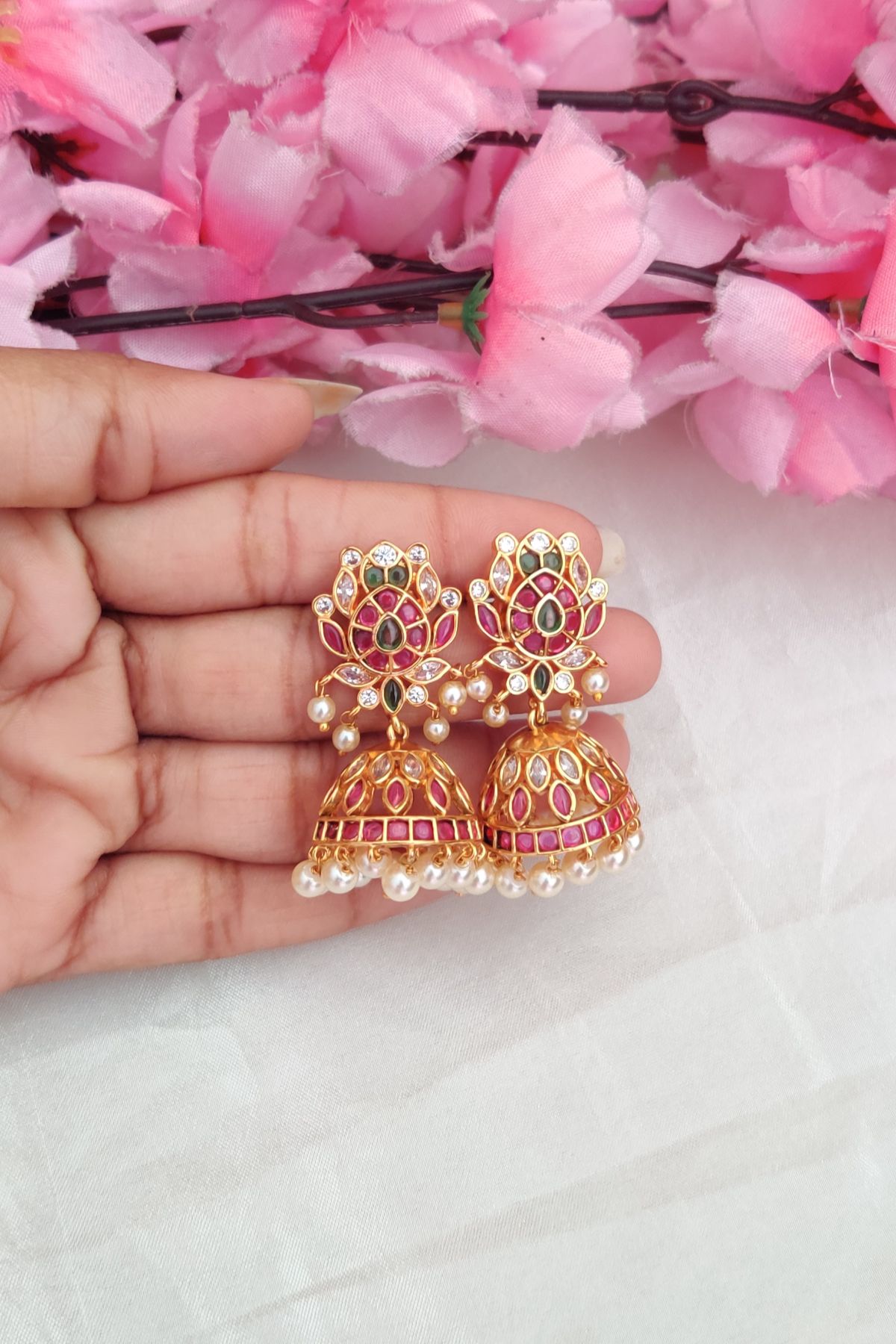 Lotus Multi Stone Designer Jumkki is a fashion jewellery product. It is not made of real gold, silver, or precious metals. Slight variation in color or finish may occur due to screen settings and lighting conditions.