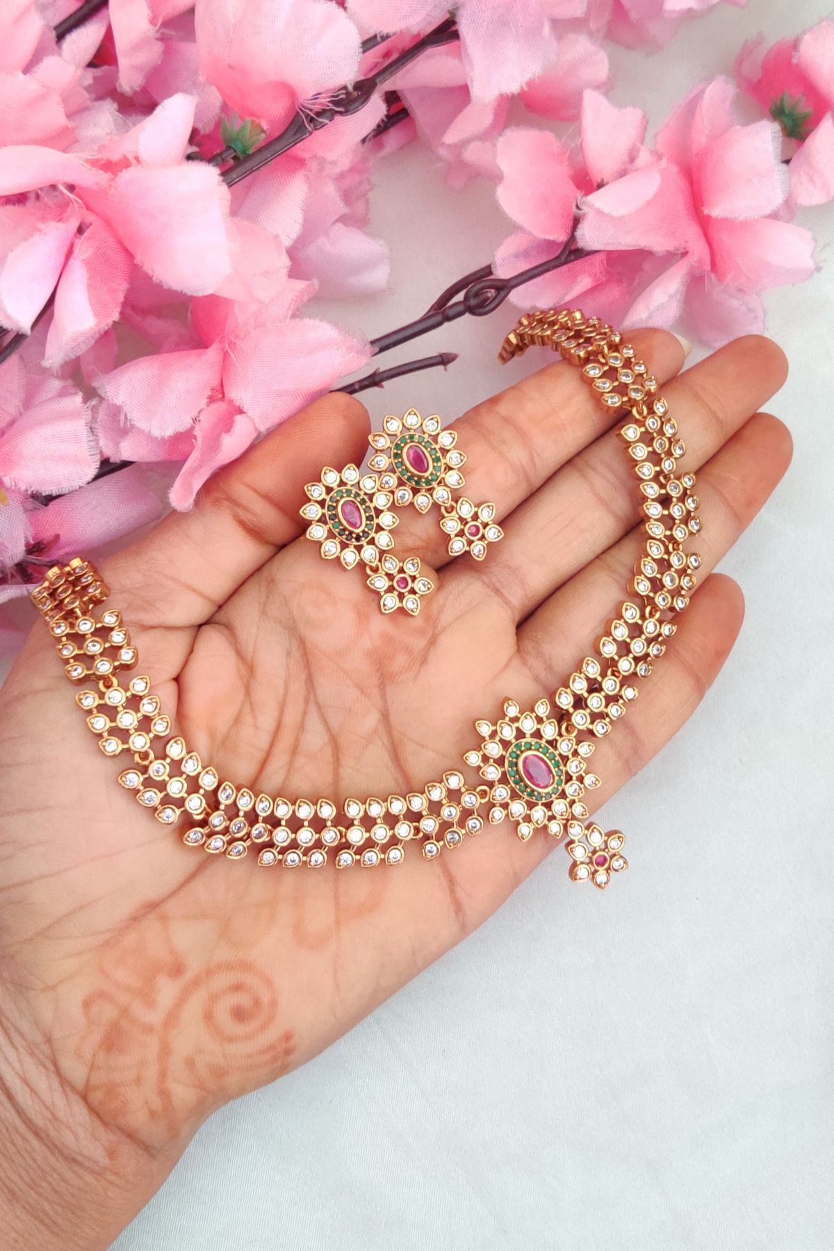 Premium Flower Designer Necklace is a fashion jewellery product. It is not made of real gold, silver, or precious metals. Slight variation in color or finish may occur due to screen settings and lighting conditions.