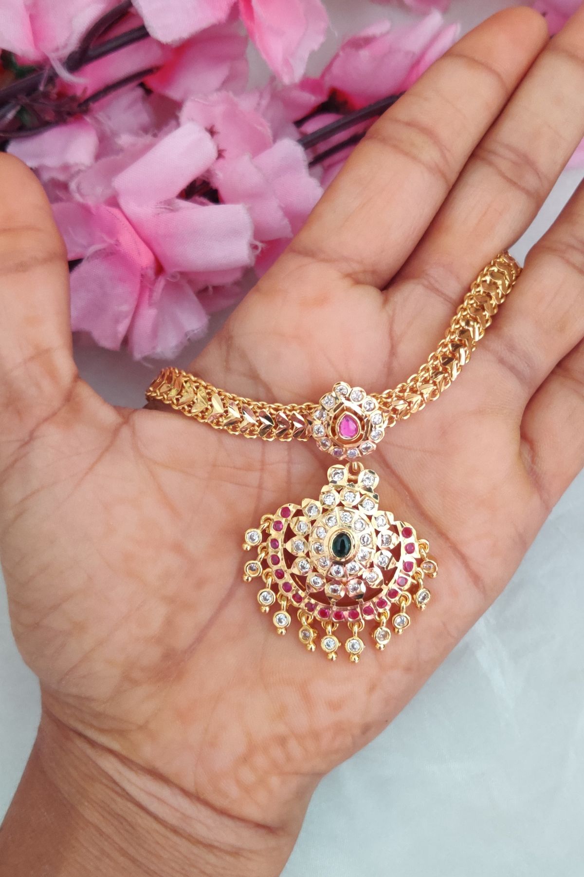 Premium MultiStone Designer Attigai is a fashion jewellery product. It is not made of real gold, silver, or precious metals. Slight variation in color or finish may occur due to screen settings and lighting conditions.