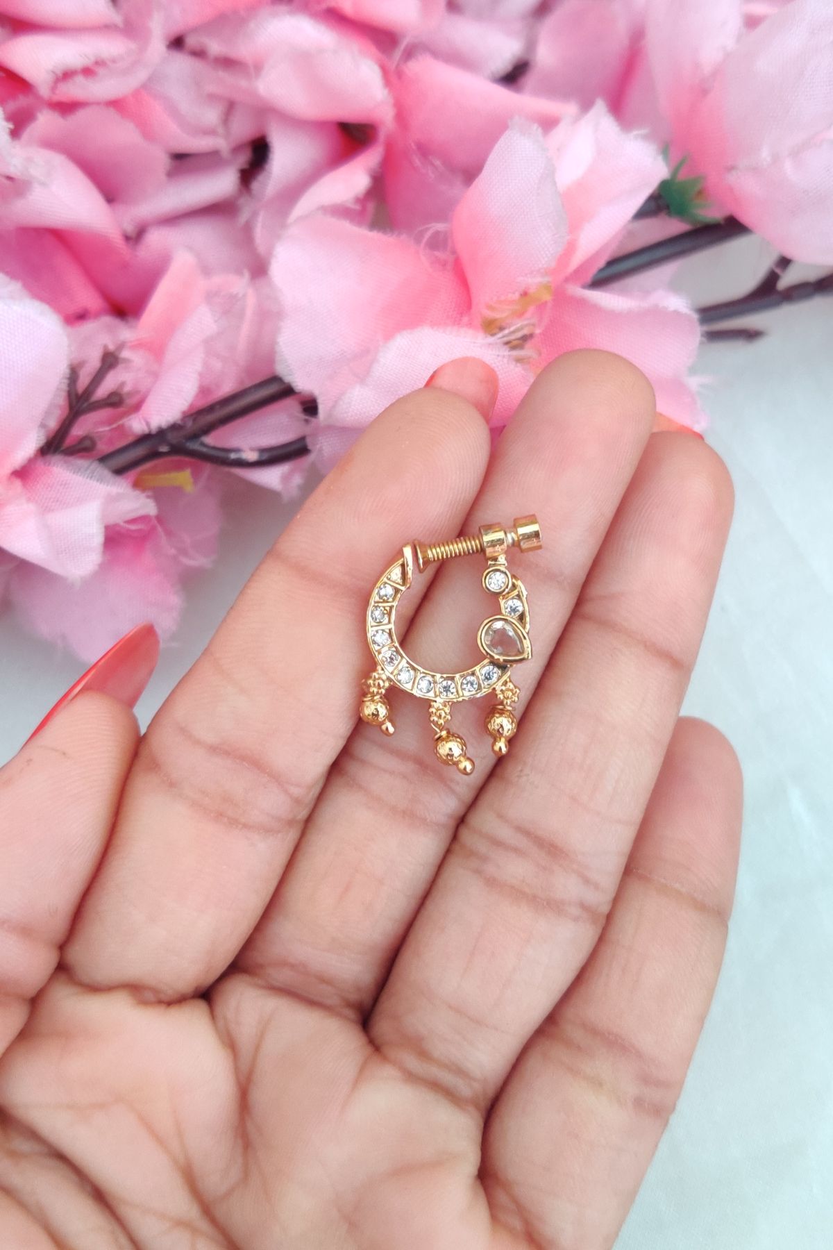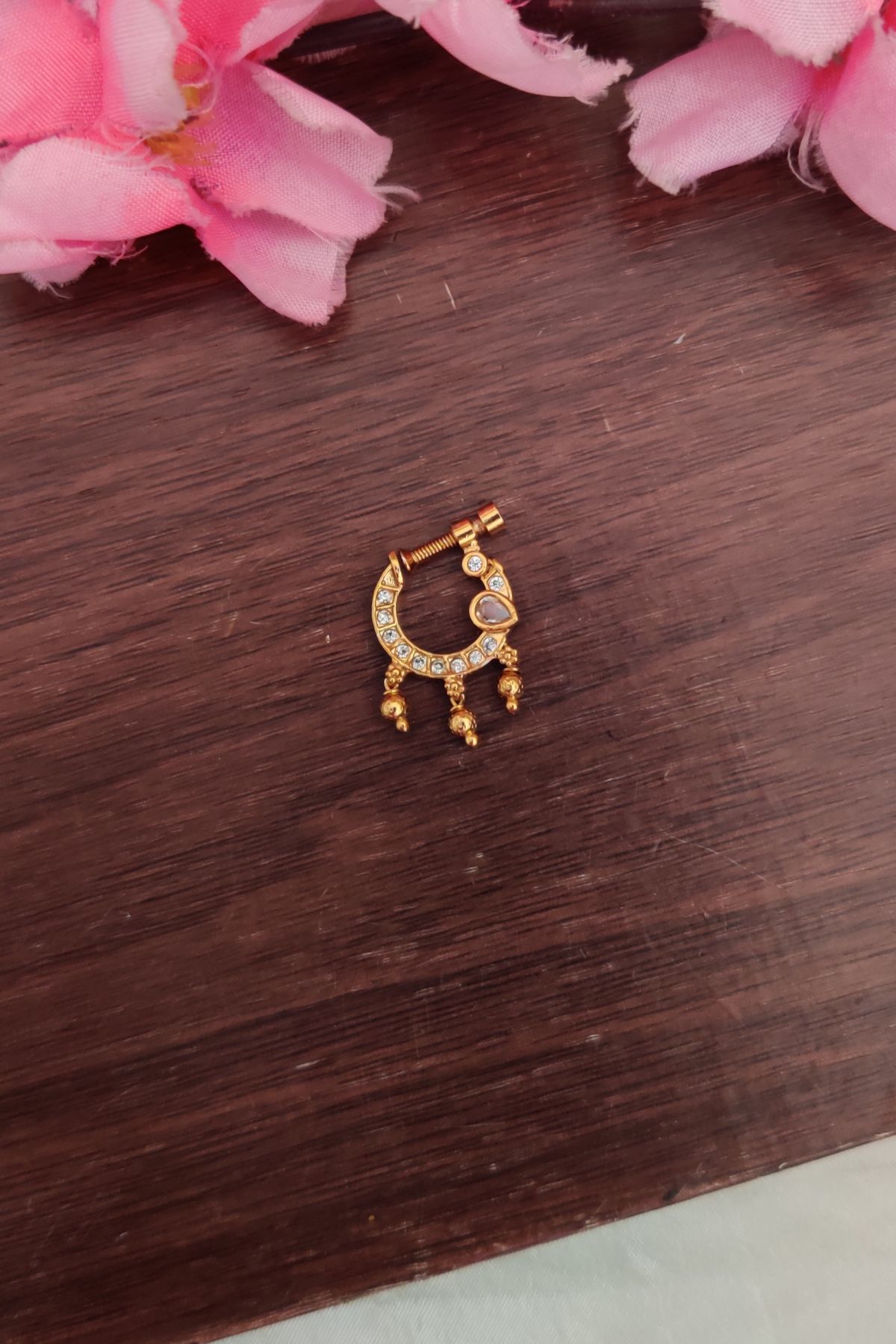 White Peacock Designer Nosepin is a fashion jewellery product. It is not made of real gold, silver, or precious metals. Slight variation in color or finish may occur due to screen settings and lighting conditions.