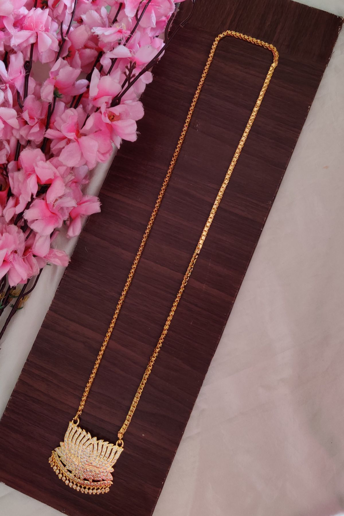 White Stone Lotus Designer Long Necklace is a fashion jewellery product. It is not made of real gold, silver, or precious metals. Slight variation in color or finish may occur due to screen settings and lighting conditions.